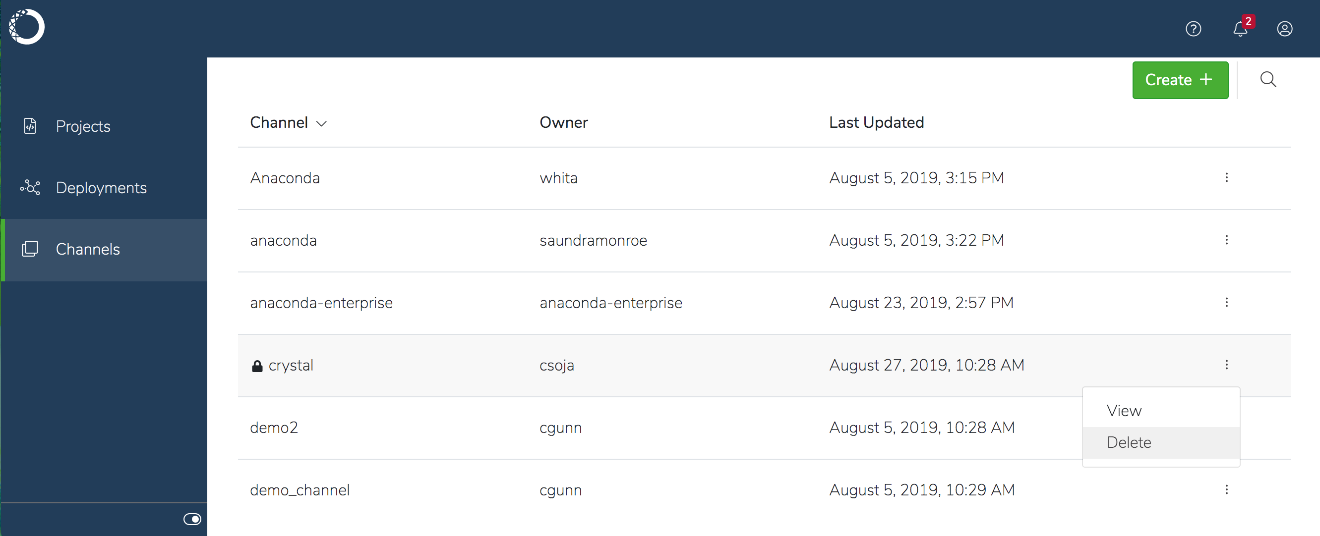 anaconda-enterprise-cli channels create <channelname>