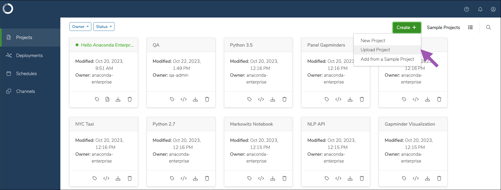 To access the sample project gallery, navigate to the Projects page, then click Sample Projects.