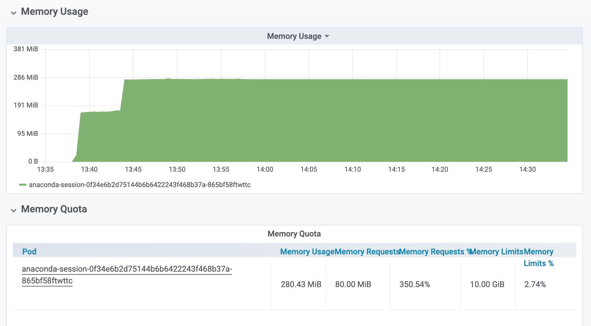 To display the monitoring graph for a user session or deployment you’ll need to identify the appropriate Kubernetes pod name.