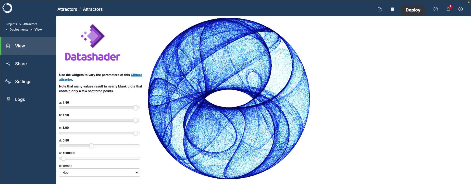 Deployments are methods for sharing parts of your data science projects and machine learning models with other users. You can create deployments for microservices such as interactive dashboard visualizations, web applications, REST APIs, or Jupyter Notebooks.